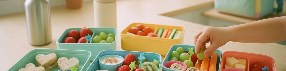 - Tænk i moduler: forbered kasser med vaskede grøntsagsstænger, kogte æg, hjemmebagte grove boller og små bøtter med hummus
